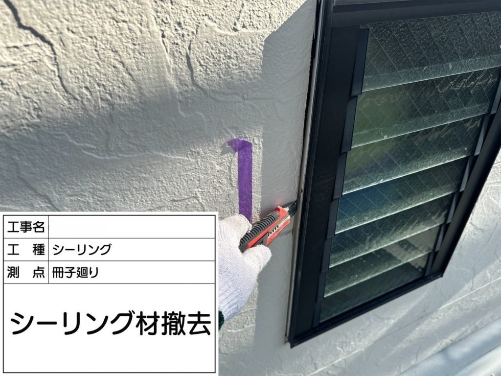 まずは古いシーリングを撤去!そのあと、密着を良くするプライマーを丁寧に塗って、