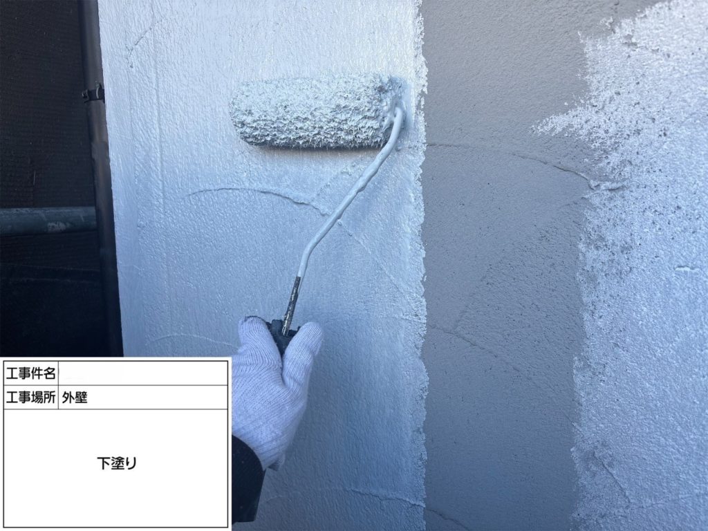 洗浄を行った後に外壁の下塗りをしっかり行うことで、塗装の仕上がりと耐久性を高めました!