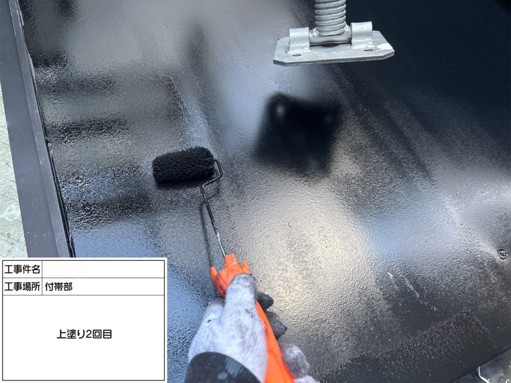 上塗りを二回施工+金具部に関しては錆止め処理をしっかりさせていただいてます!塗膜を厚くし、耐久性の向上!