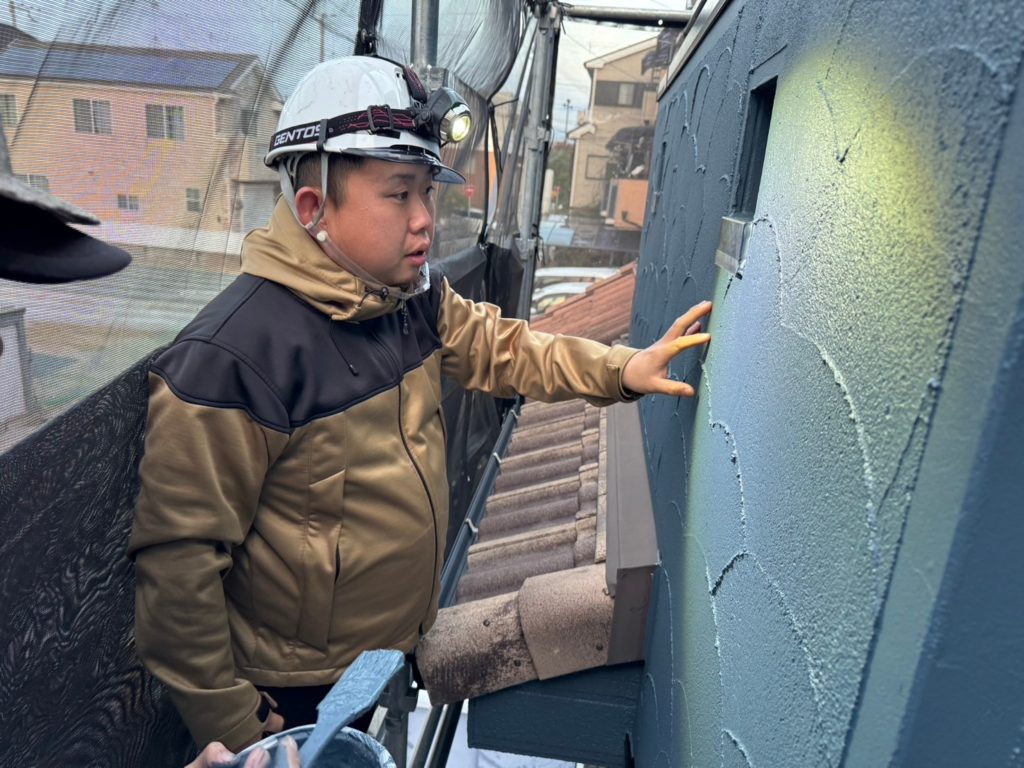 中塗りと同じ塗料を重ね塗りすることで、塗膜にしっかりと厚みを持たせ、耐久性・防汚性をアップさせています!