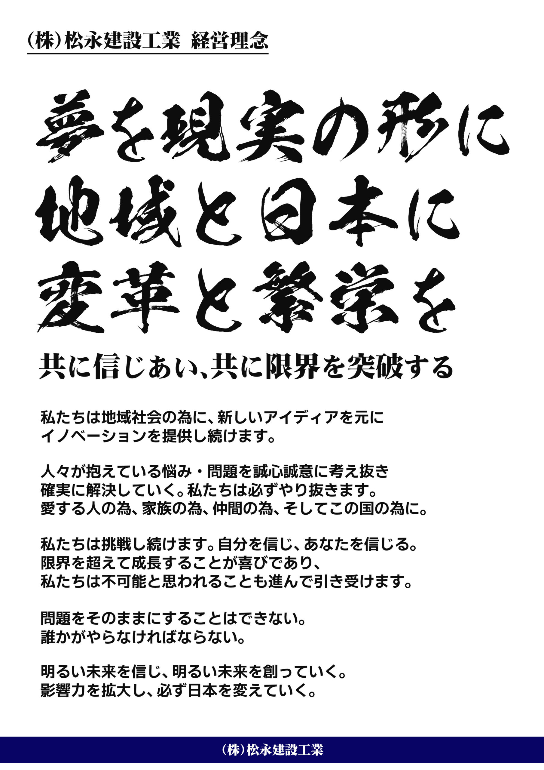 正直な現地調査、正直な人材(職人)育成、正直な施工、そして正直な経営を地道に貫き、必ず地元にはなくてはならない仕事をしてみせます。