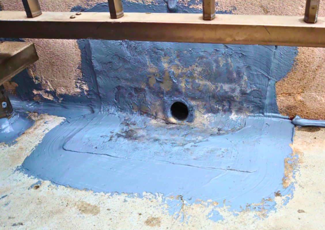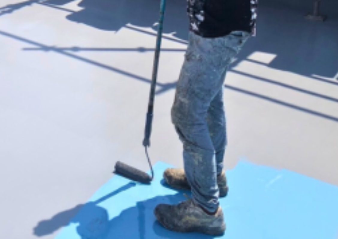 そして、最後の仕上げ塗りです。防水工事におけるトップコートの役割としては、ウレタン二層目で作った防水層の”保護”をするという役割です。 そのため隅々まで塗る必要があります。
